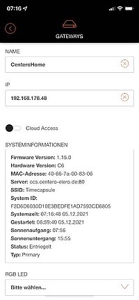 This starts up the CenteroHome gateway, teaches in the elero wireless receivers and saves them in a configuration. The configuration is then checked and saved on the gateway. Neither the WLAN key nor a device of the end user are required for commissioning. After the initial configuration with the Centero Home NXT app, the connection to the smartphone / tablet of the specialist partner is disconnected and Centero Connect can no longer be used on this gateway. This enables a quick setup and also increases security for the end user. To operate the elero wireless receivers and to learn and operate other devices from the various manufacturers, the Centero Home NXT app is required, which must be installed on the end user's device (smartphone or tablet).