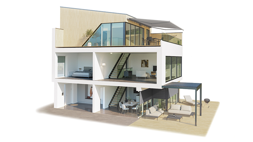 Centero Home NXT is the ideal point of entry into the world of the smart home. The central control unit (gateway) is connected by WiFi to the home router and connects all the taught-in devices to form one system. Operation is manual or automatic with an iOS® or Android™ app. The Centero Home NXT system can be used outside of the home’s WiFi network via the cloud as well as locally. The user-friendly and intuitive operation by smartphone or tablet is convincing for both construction clients and modernisers.