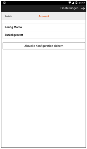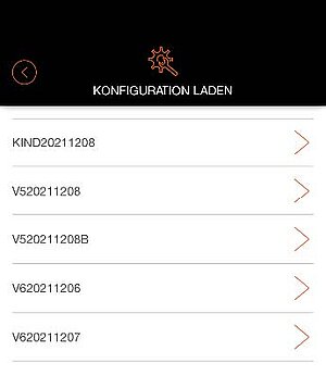 9. You return to the overview of the saved configurations. Return to the start screen.