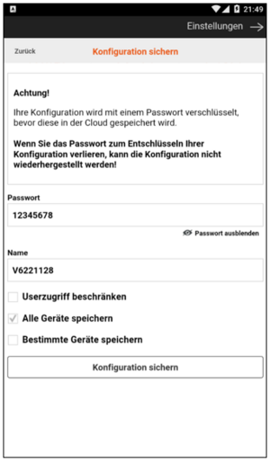 Info: If a restricted or full configuration is selected, the corresponding devices are actively displayed in the new mobile device.