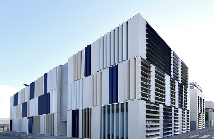 41 linear actuators from elero were installed as part of a sustainable architecture project in Spain. The building in the Valencia region is one example of how intelligent building technologies can be used to achieve biophilic goals: dynamic façades provide shade for the building and can generate electricity in an environmentally-friendly manner. In addition, the management of daylight ensures pleasant illumination of the interiors and thus a healthier work climate.