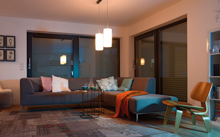 Control systems with a time function ensure that your roller shutters close reliably in the evening. For prolonged absences, simply activate your elero control system's integrated holiday programme. The roller shutters on the house now open and close with a short time deviation – making your home appear inhabited and warding off any potential burglars. And if a burglar should try to break in anyway, elero drives with fixed shaft connectors make it significantly harder to push up the roller shutter.