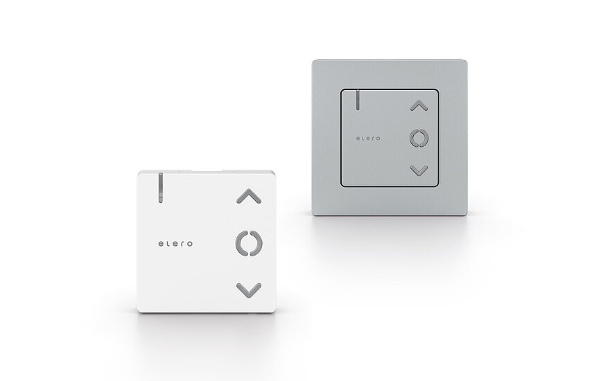 The control is a single-channel wallmounted radio transmitter. It can be used as a single, group or central control. Transmission and feedback commands are visualised.