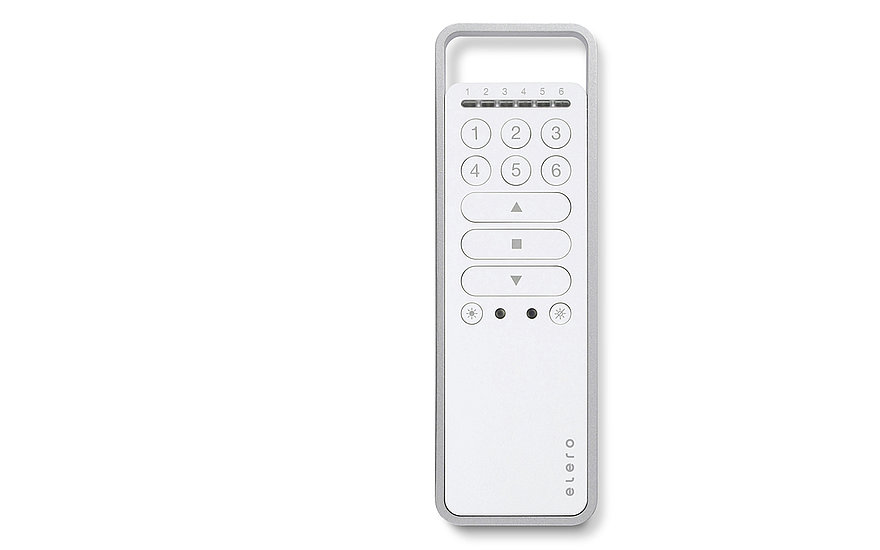 6-channel hand-held transmitter with manual / automatic operation switch-over for convenient operation of roller shutters, sun protection systems and much more.