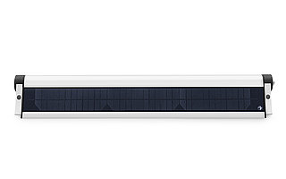 The solar module with the attractive design can be affixed to an awning, for example, without the need for complex installation work; the cables are pluggable. The angle of the solar module is adjustable.