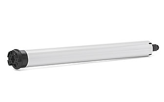 The new super quiet plug&play radio tube drive with round head for roller shutters with two selectable running modes: standard running or whispering mode, is suitable for shafts with a diameter of 50 mm or more, has a blind protection and a noiseless soft brake. Only in combination with rigid shaft connectors.